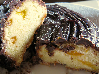 Procedimento: sbattere le uova con lo zucchero e il sale. Aggiungervi il burro molto morbido e continuare a sbattere, quindi unire lo yogurt e la vaniglia. Infine incorporare metà della farina, sempre mescolando. Da ultimo aggiungere il lievito setacciato con la restante farina. Prima di versare l'impasto nella teglia predisposta (imburrata e infarinata), unirvi le albicocche ridotte a pezzetti e mescolare. Infornare a 160° ventilato per 40', o comunque in base al tipo di forno. Quando la ciambella si sarà raffreddata, sfornarla e glassarla. Per fare la glassa occorre mettere il cioccolato a bagnomaria unitamente all'acqua. Non appena il cioccolato comincerà a sciogliersi, mescolarlo fino ad incorporare tutta l'acqua. Eventuale altra acqua potrà essere aggiunta solo se caldissima e a piccolissime dosi.